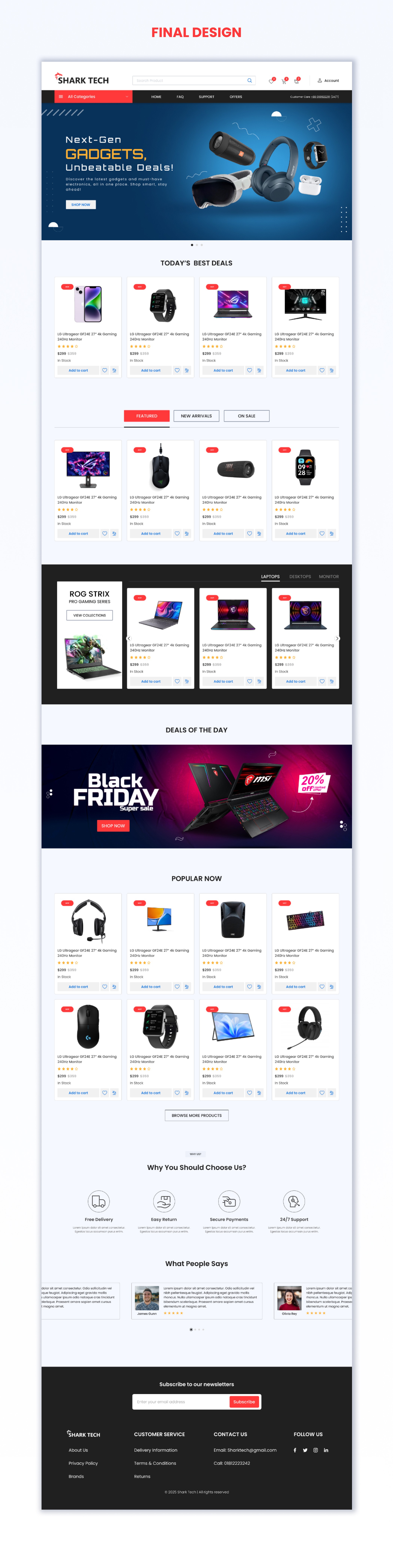 Shark Tech is a modern e-commerce platform for electronics and gadgets, designed for a seamless and intuitive shopping experience. Our team has completed the UI/UX design, focusing on smooth navigation, user-friendly interactions, and a sleek, modern aesthetic. Excited to share our work and gather feedback!
